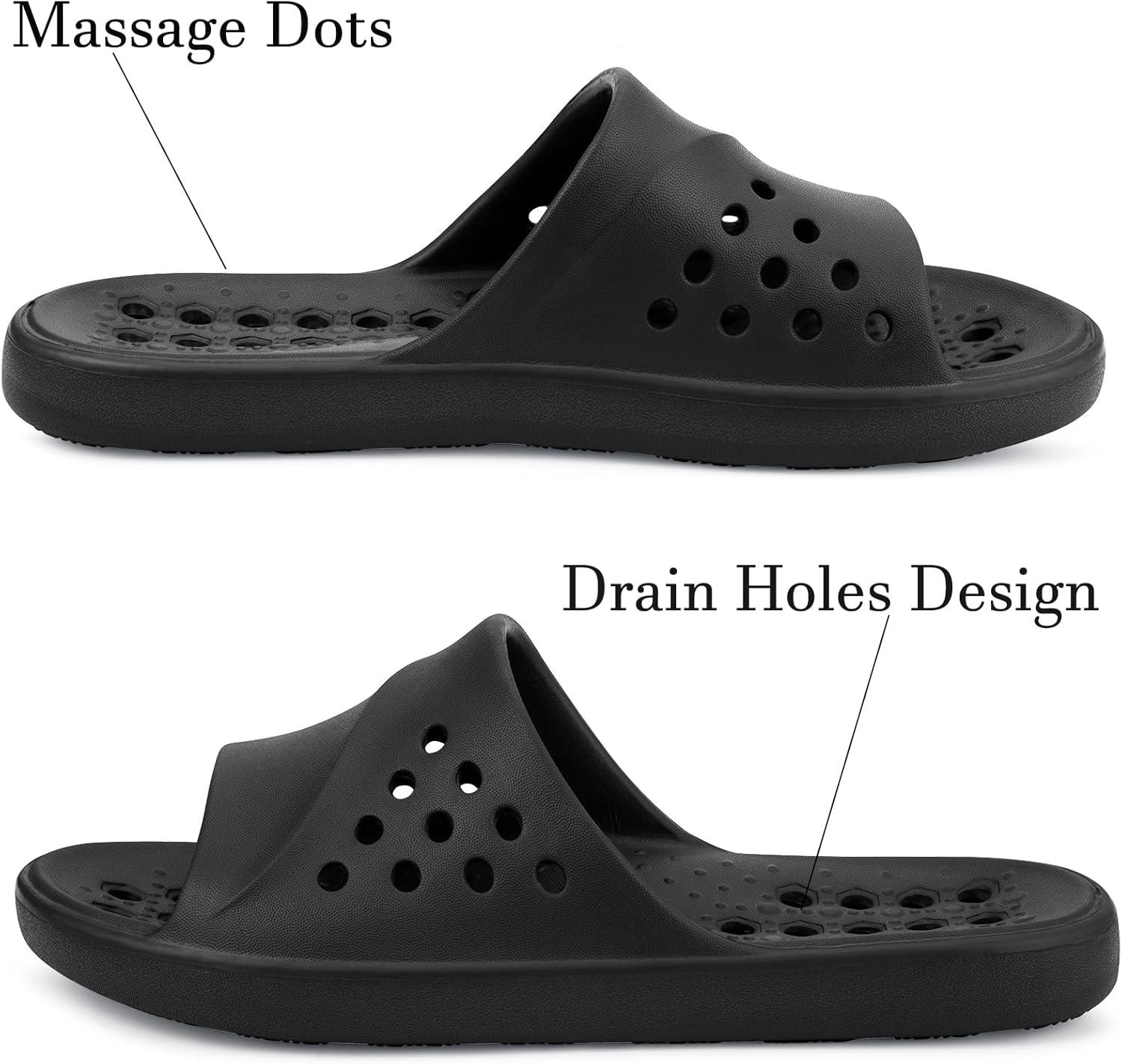 This is a pair of very comfortable shower shoes. When you take a shower, the sole of the shoe has many drainage holes that can quickly drain water, making your feet dry and comfortable